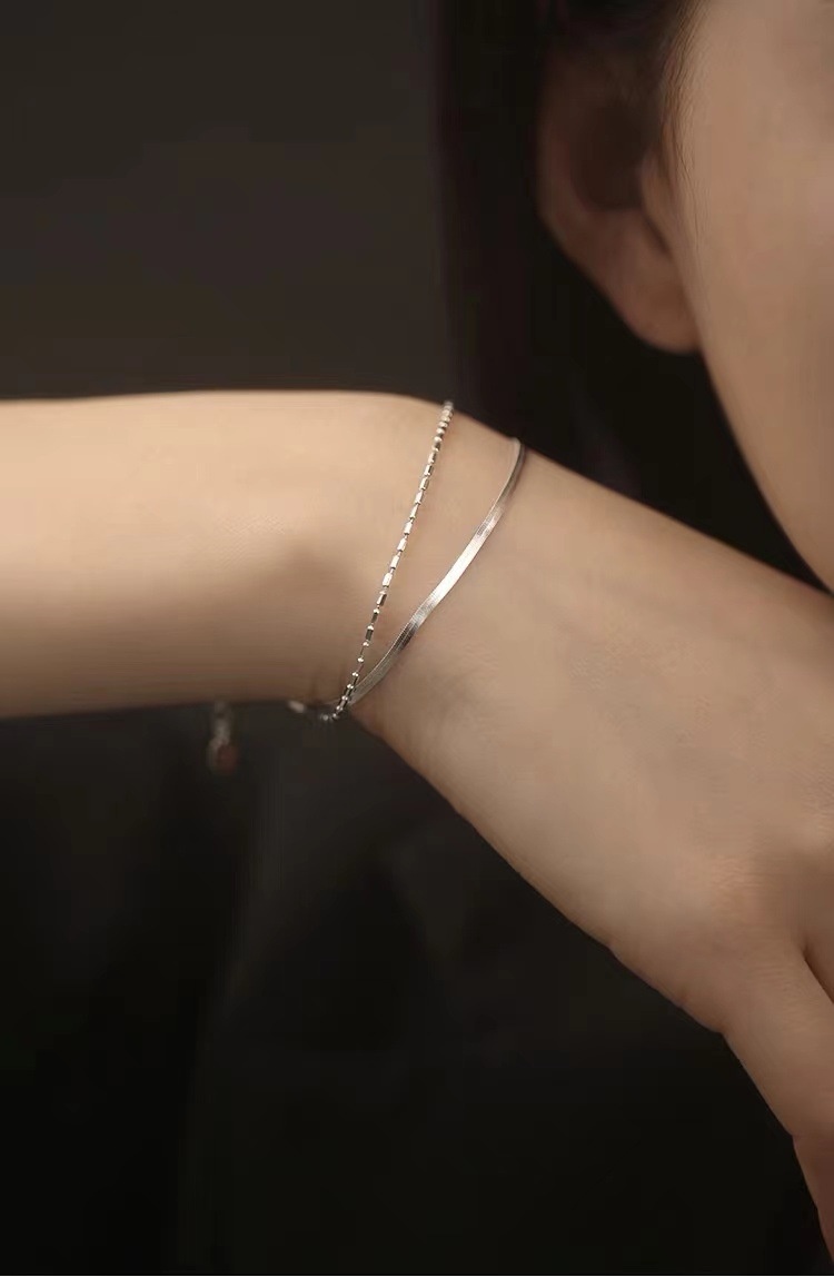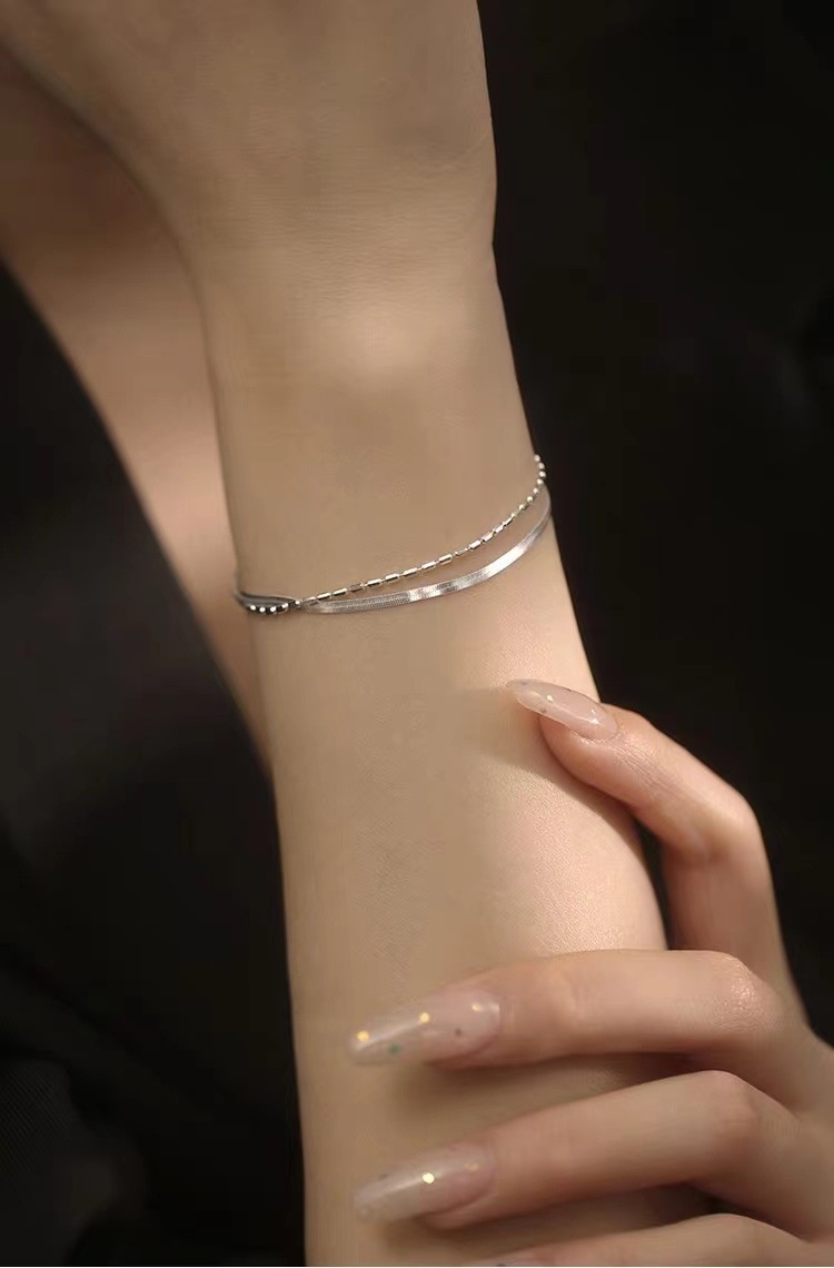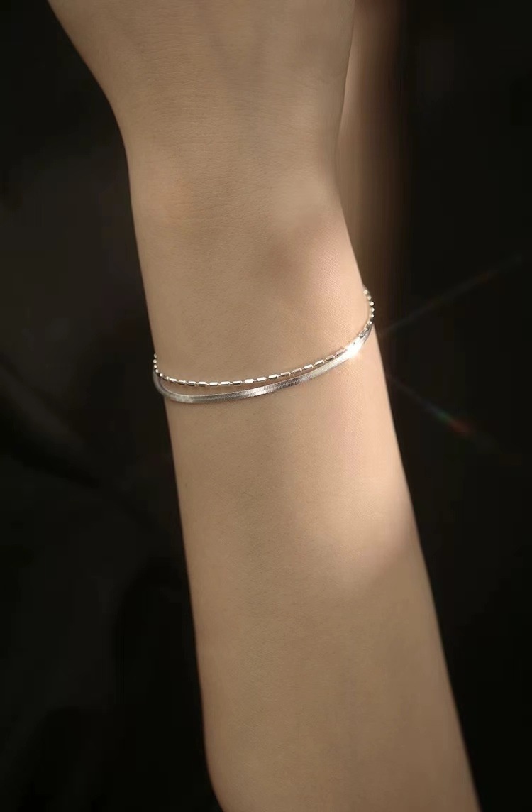 This 925 silver-plated double-layer flat snake chain bracelet is designed to bring effortless elegance to any outfit. With its sleek layered design and smooth flat finish, it adds a modern yet timeless touch to your jewelry collection.
