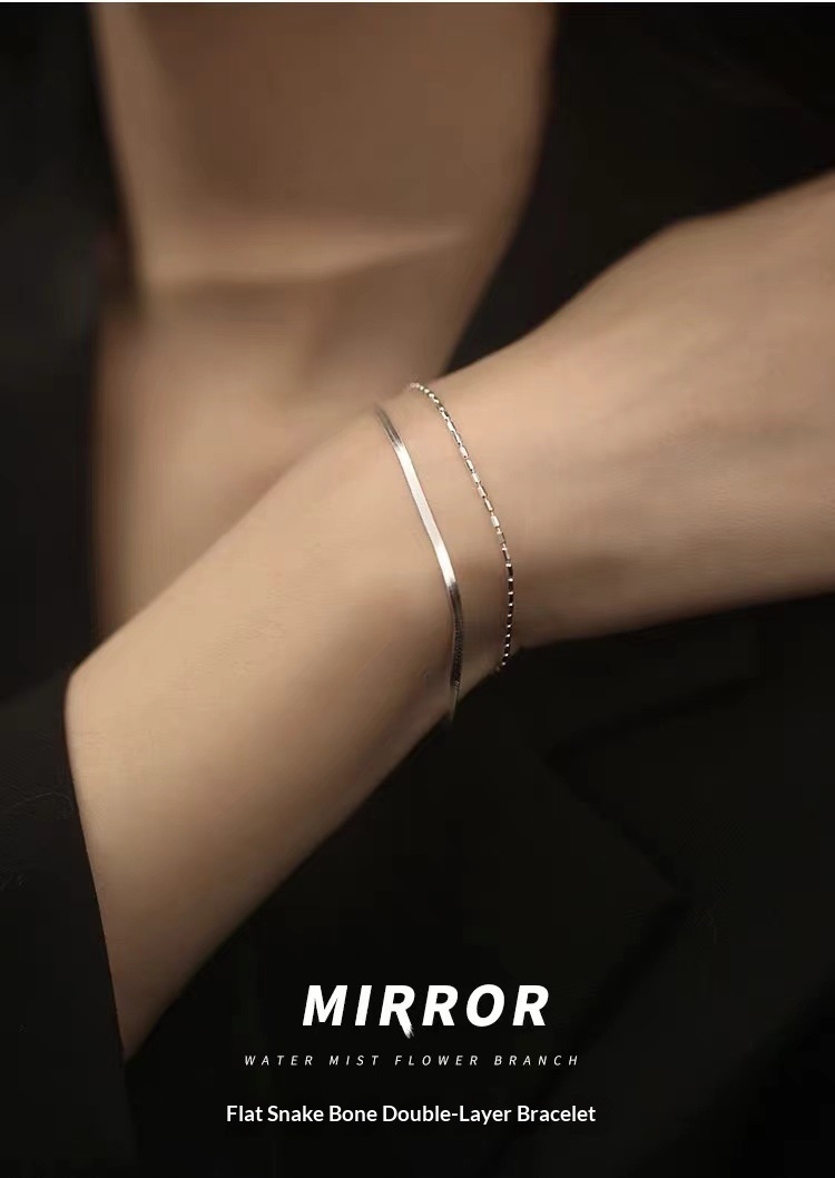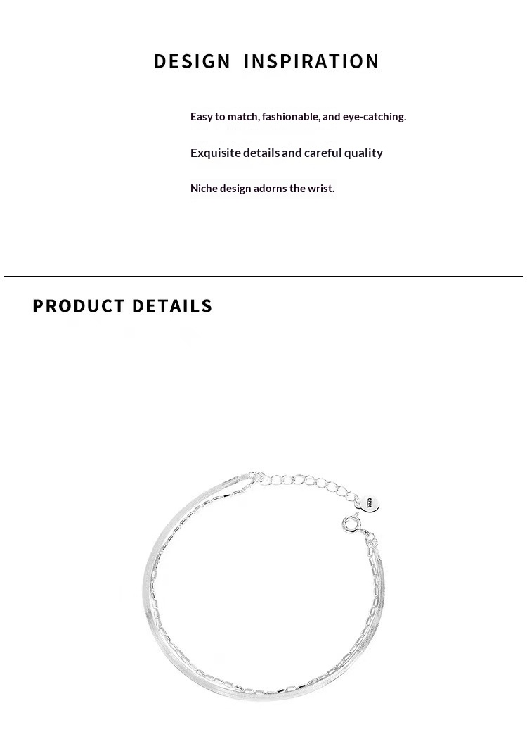 925 Silver-Plated Double-Layer Flat Snake Chain Bracelet for Women
